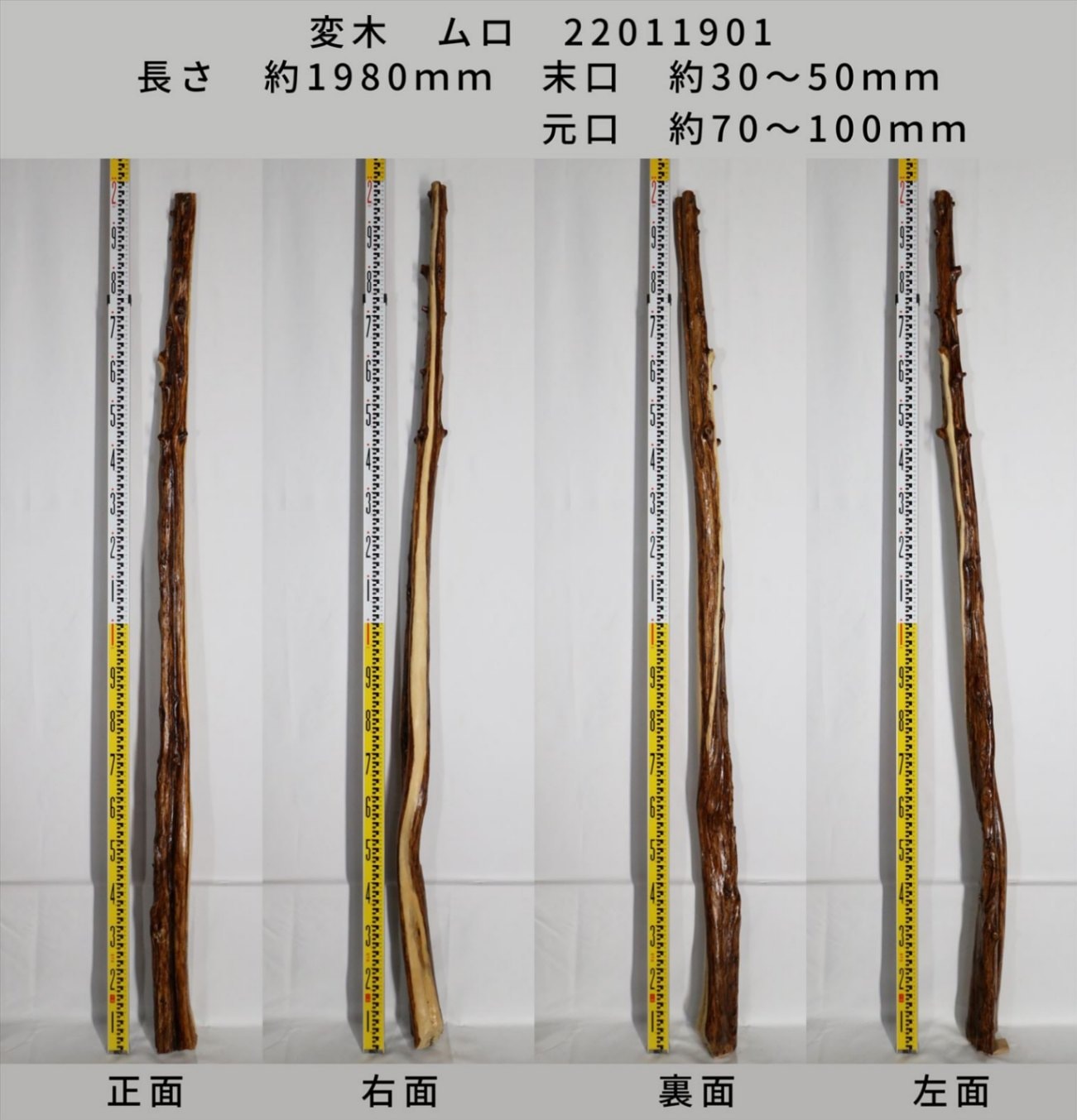 変木 榁(ムロ) 長さ約1980mm 末口幅Φ30~50mm 元口幅Φ70~100mm 22011901