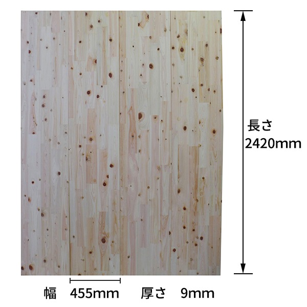 桧 押入用壁板 2.4m 本実加工 節あり 無塗装 2420x9x455mm (4枚入り)