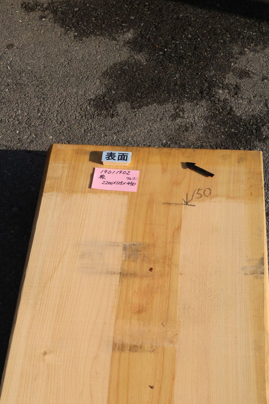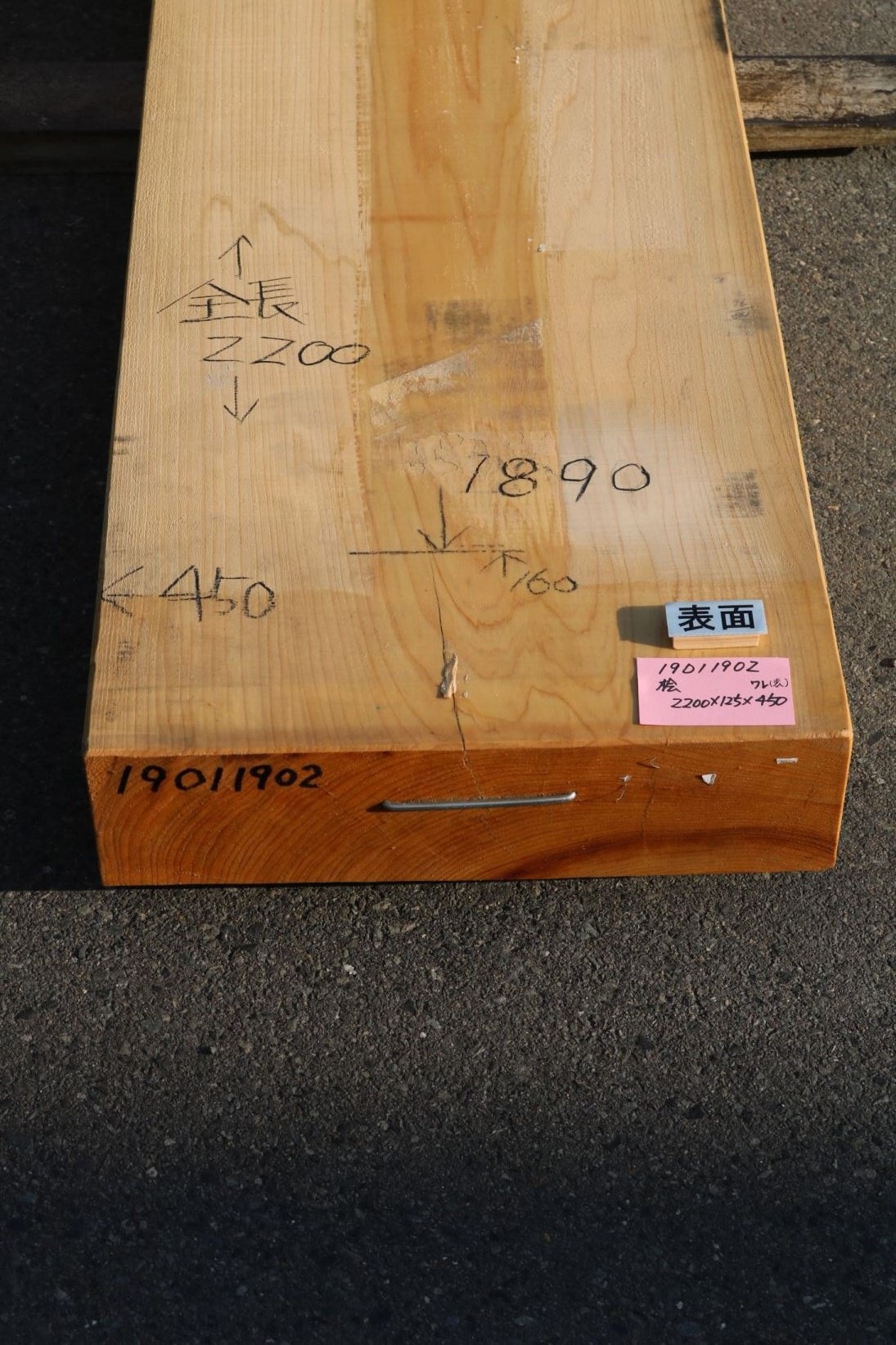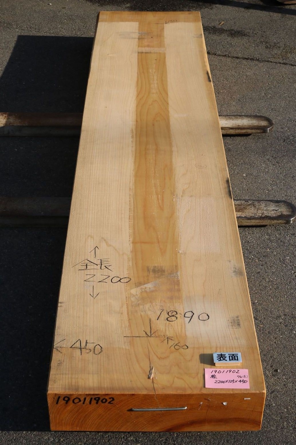 桧板 一枚板 2200×125×450mm 19011902