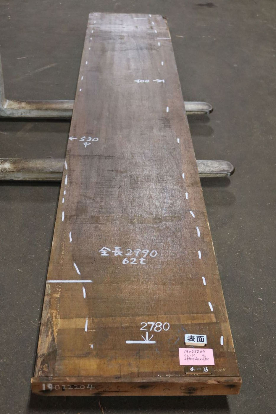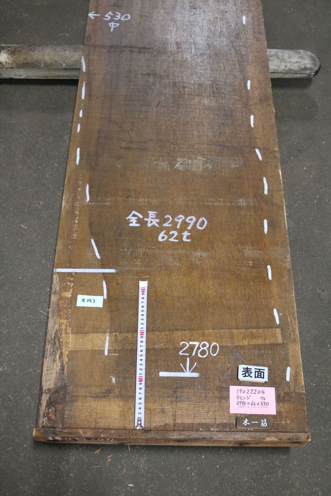 ウエンジ板 一枚板 2990mm×62mm×530mm 19022204