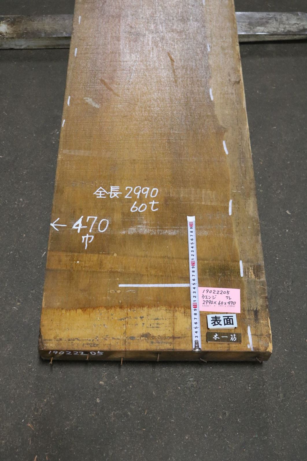 ウエンジ板 一枚板 2990mm×60mm×470mm 19022205