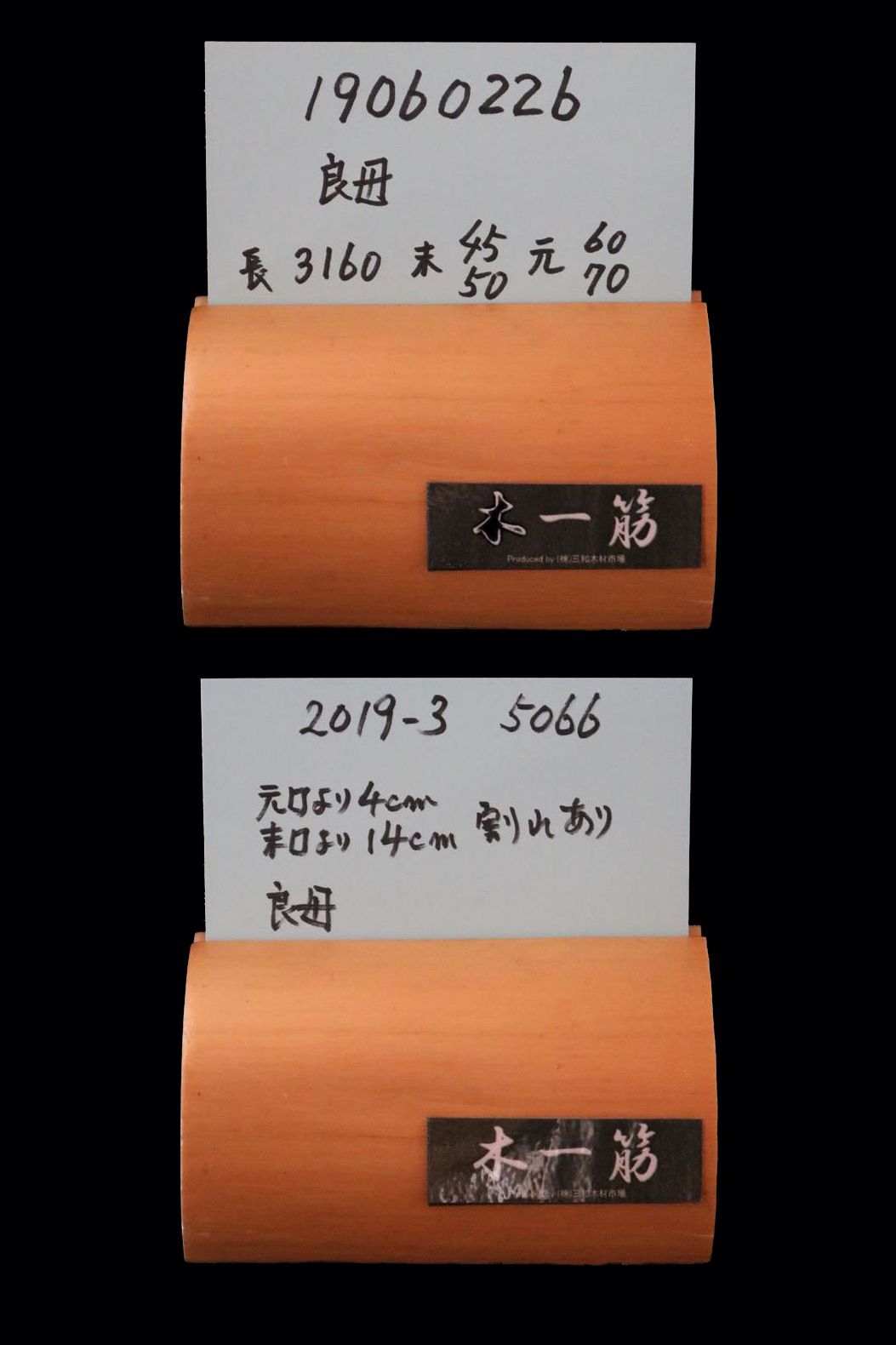 【変木】 良母 長さ3.1m 末口幅45mm 19060226