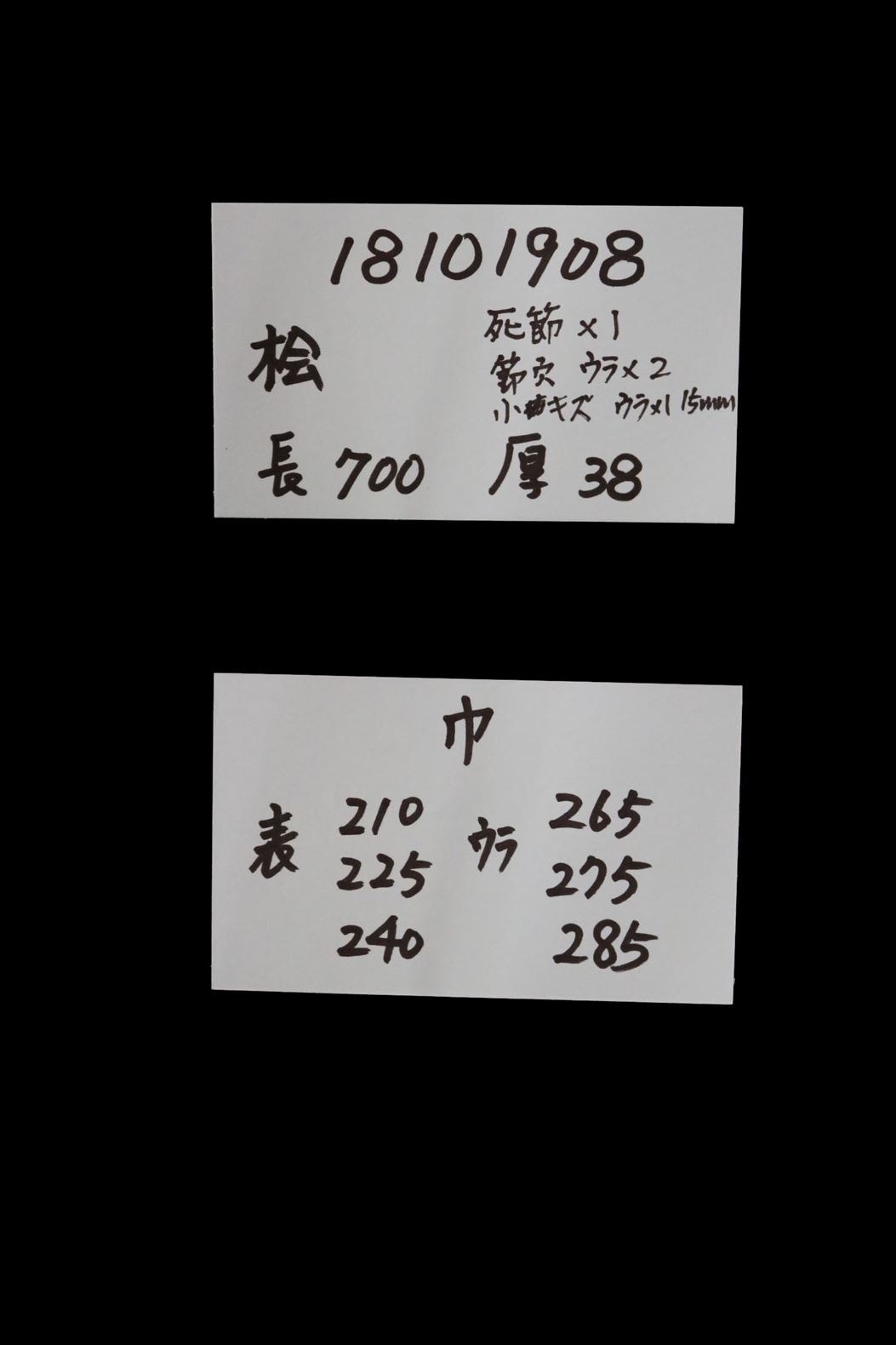 桧 耳付加工板 700×38×225mm 18101908