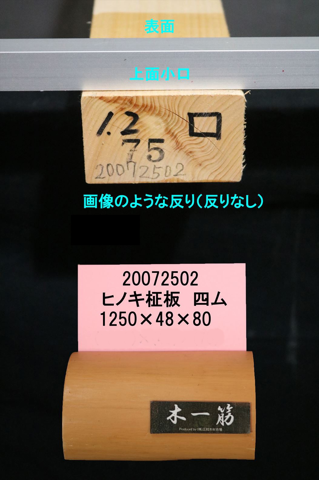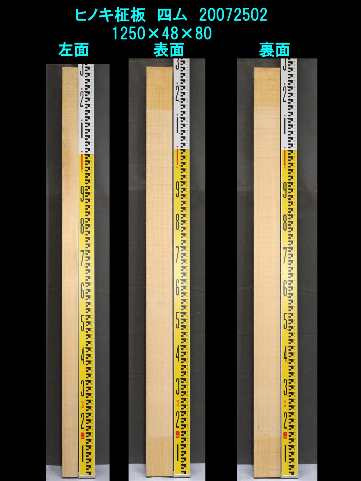 桧 柾板 四方無地 1250×48×80mm 20072502