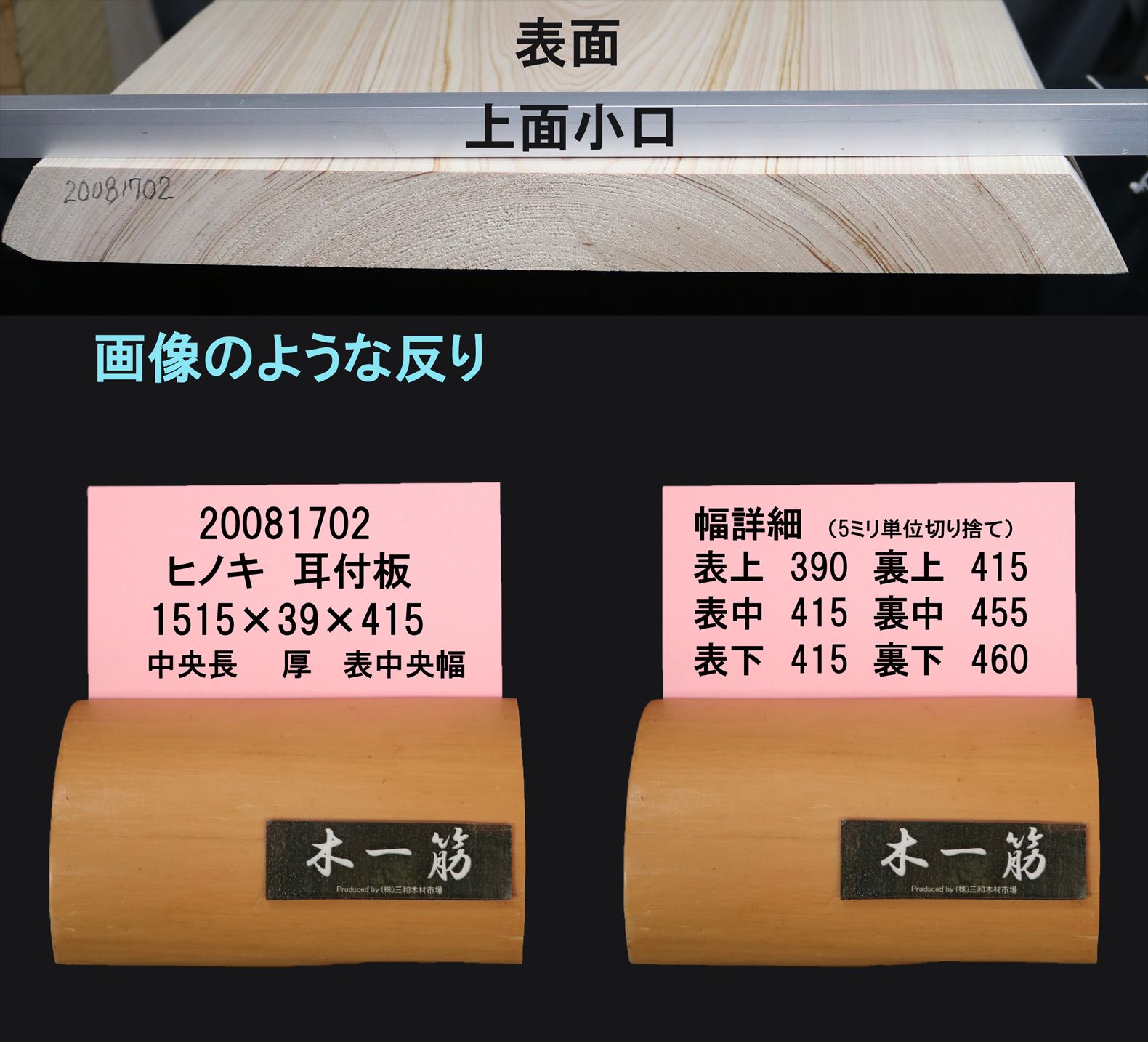 桧 耳付加工板 1515×39×415mm 20081702
