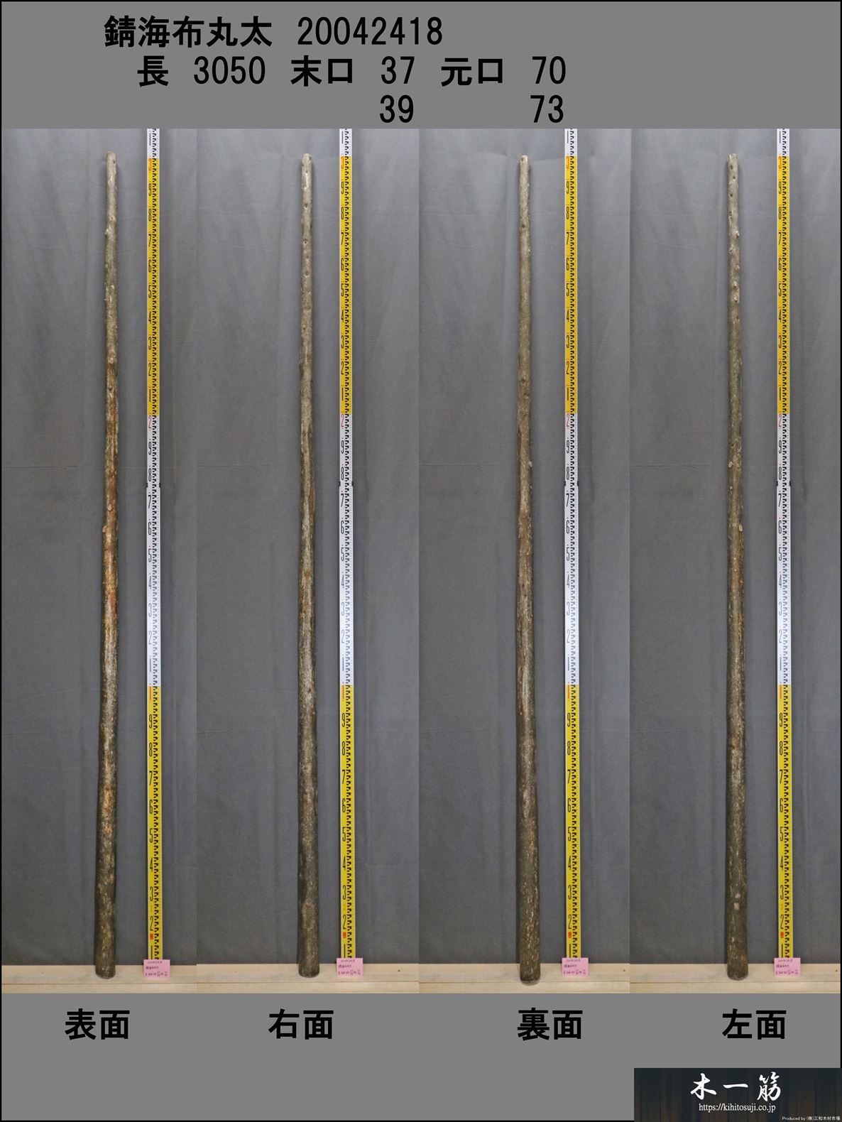 【変木】 錆海布丸太 長さ3050mm 末口幅37~39mm 20042418