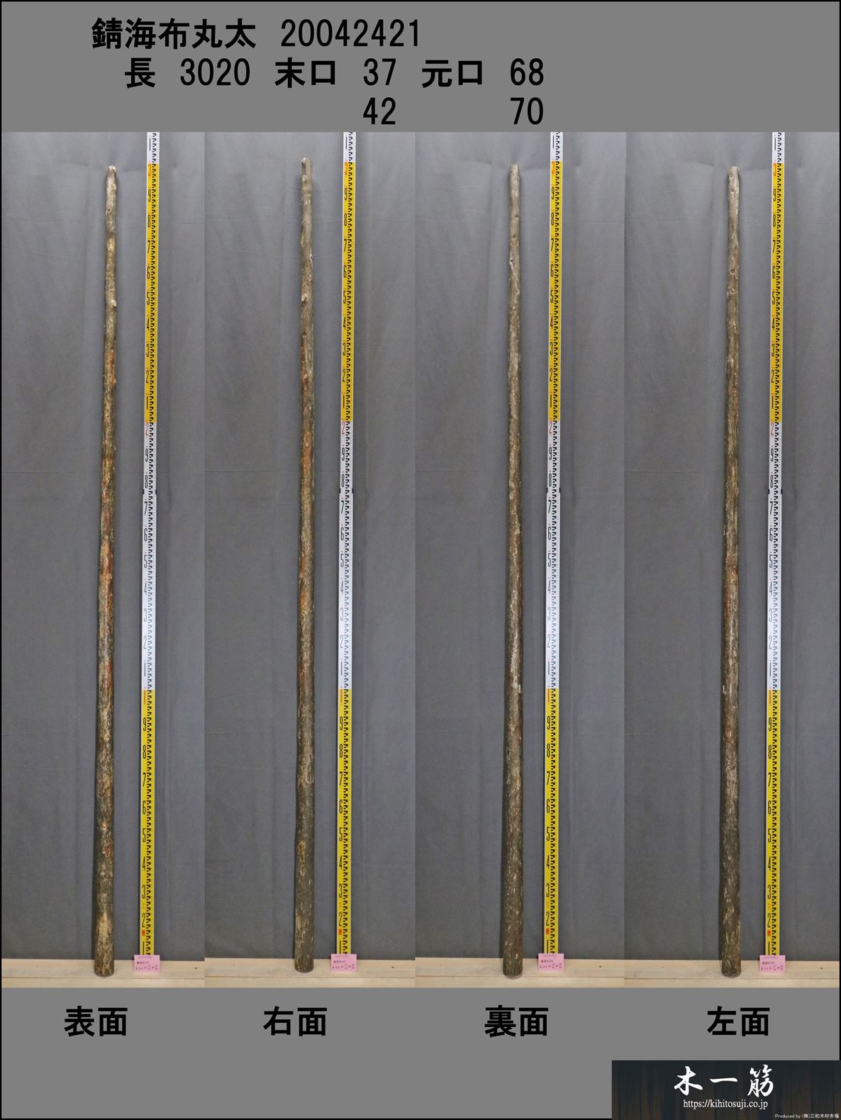 【変木】 錆海布丸太 長さ3020mm 末口幅37~42mm 20042421