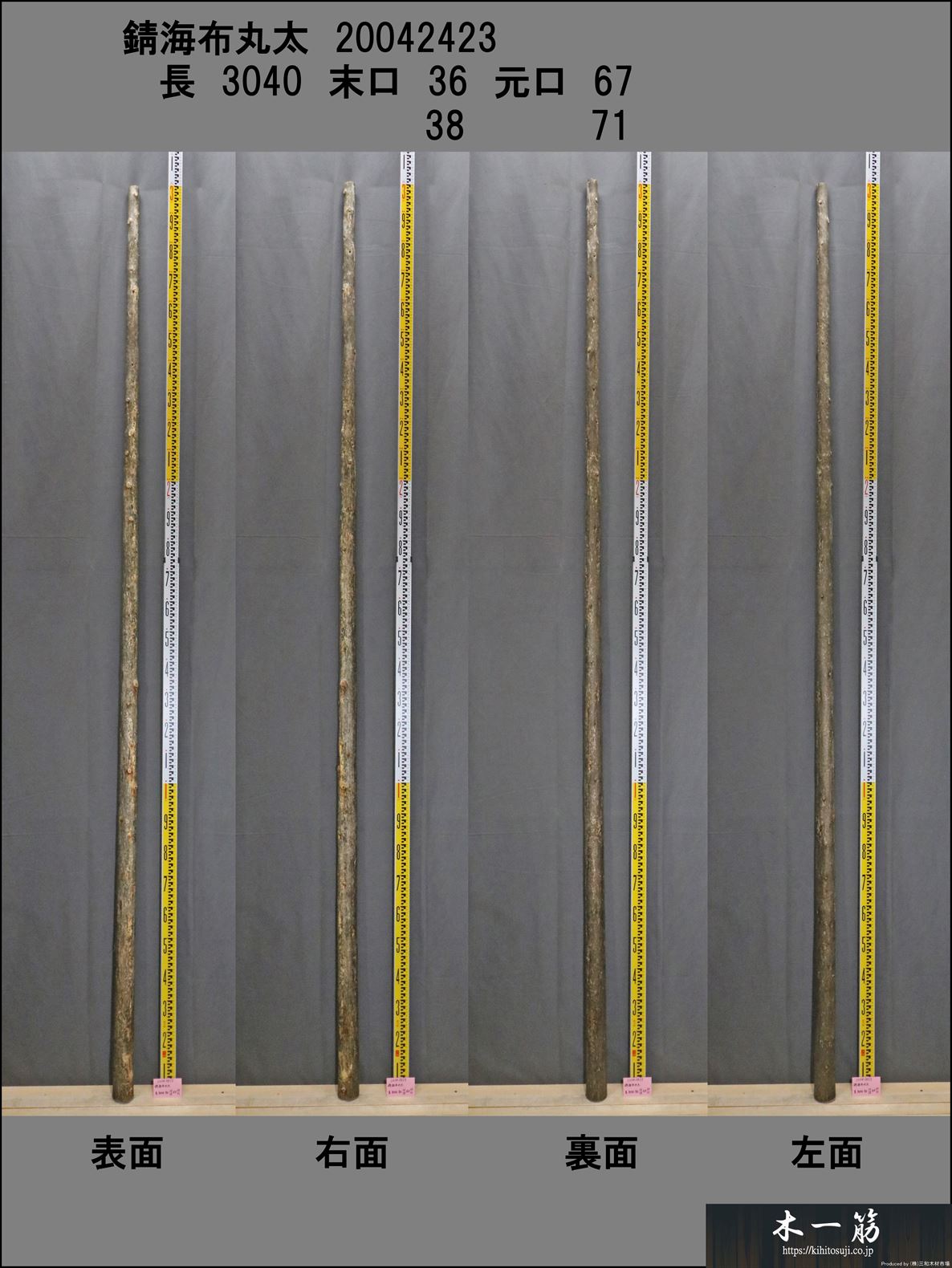 【変木】 錆海布丸太 長さ3040mm 末口幅36~38mm 20042423