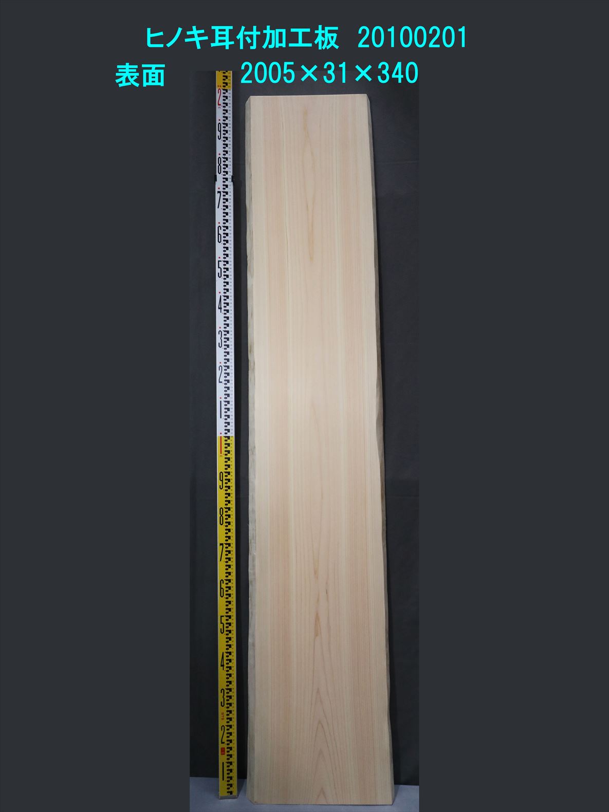 桧 耳付加工板 一枚板 2005×31×340~410mm 20100201
