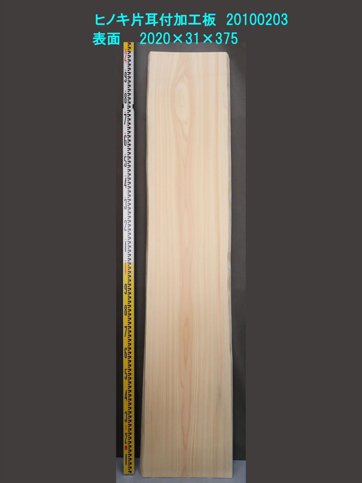 『リモートワークに一点ものを』 桧 耳付加工板 2020×31×365~440mm 20100203