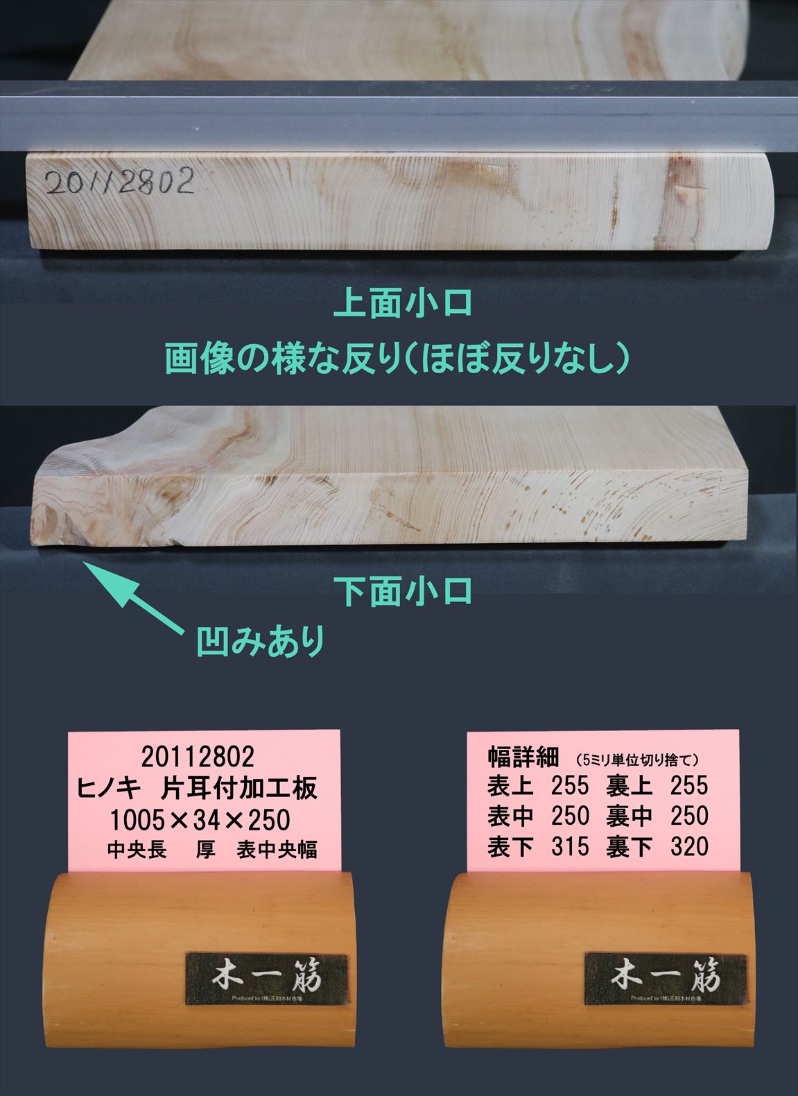 桧 片耳付加工板 1005×34×250~320mm 20112802