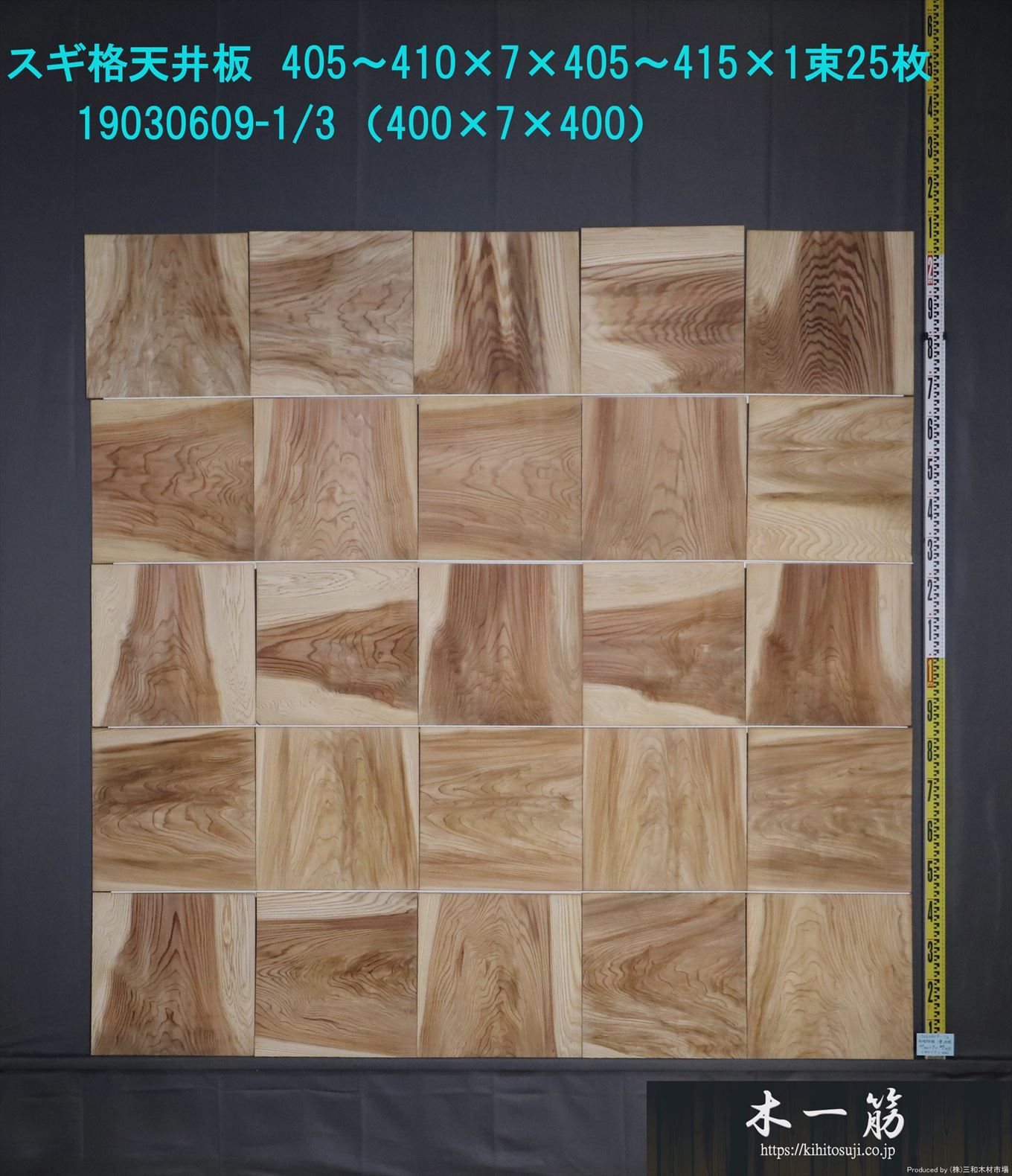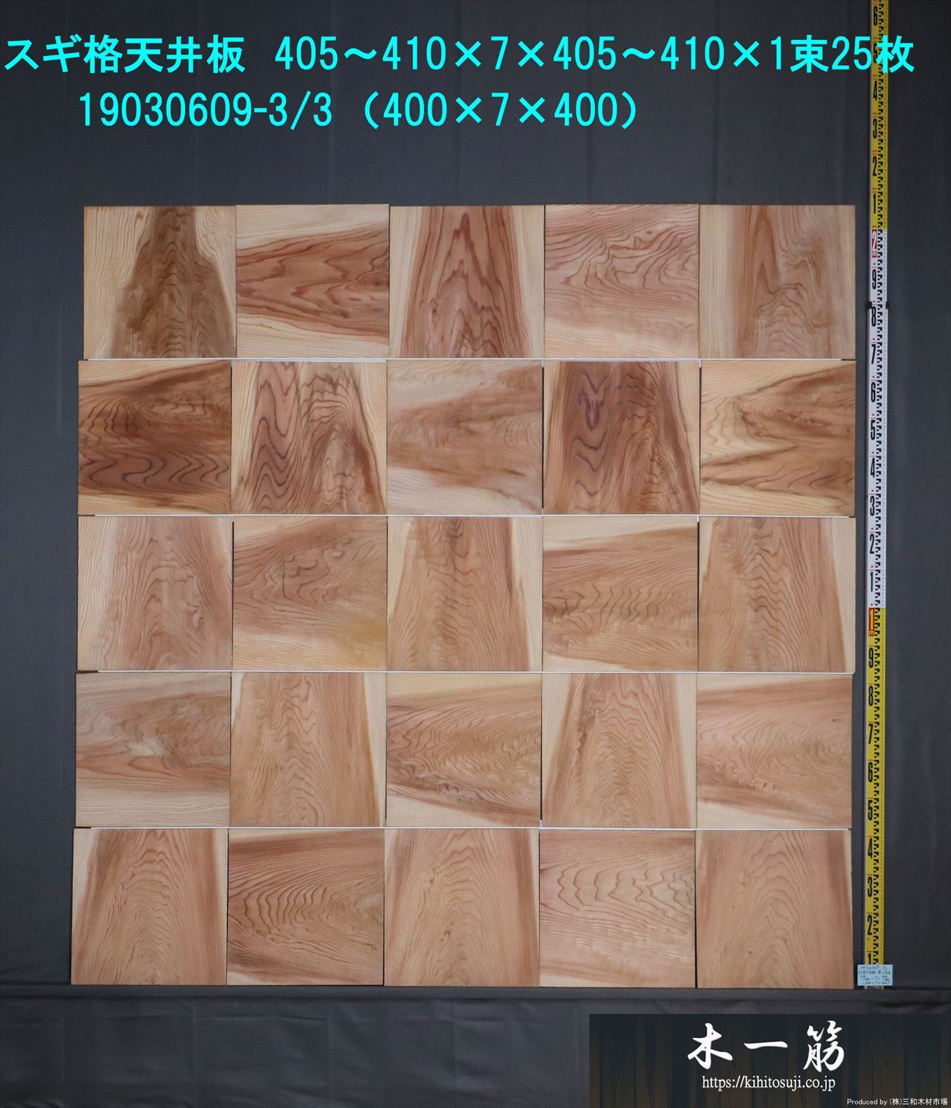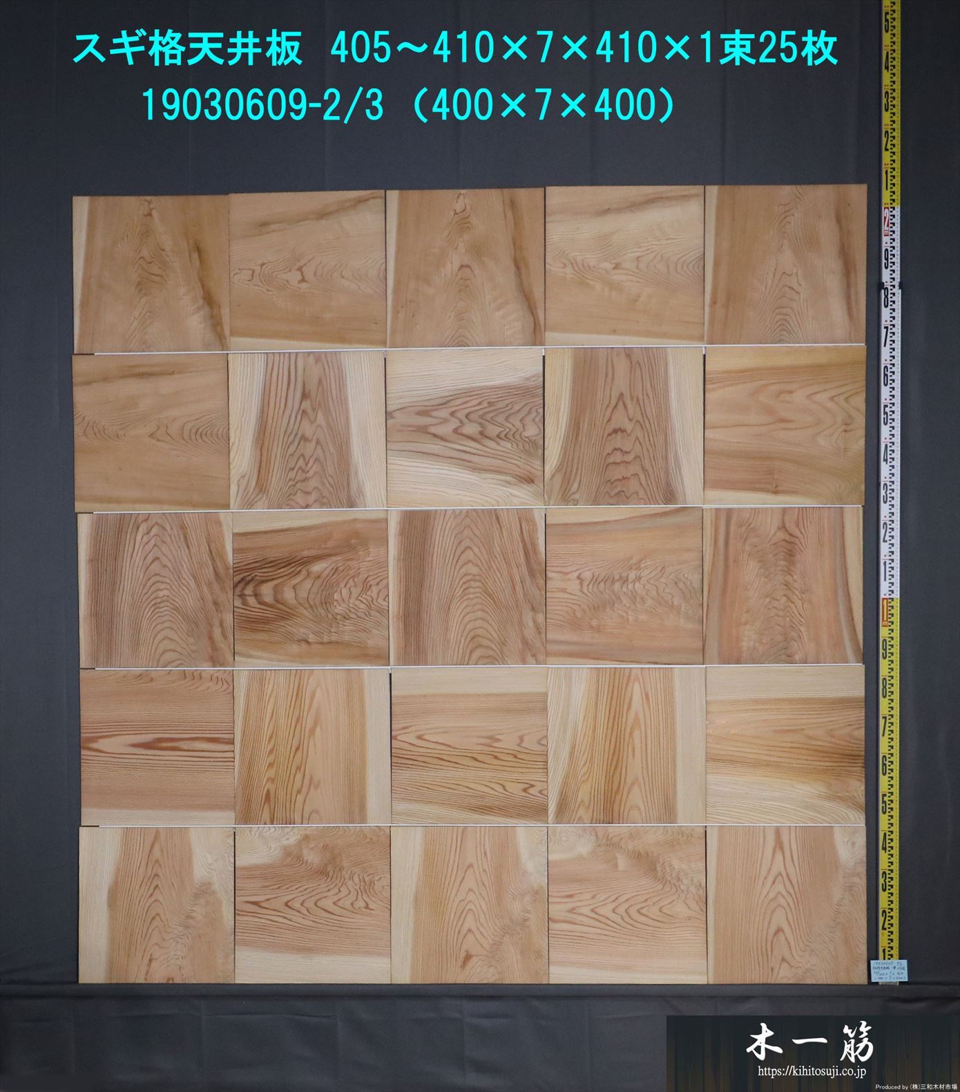 送料無料 杉 格天井無垢板 400×7×400mm 19030609-1/3~3/3 25枚入り×3セット