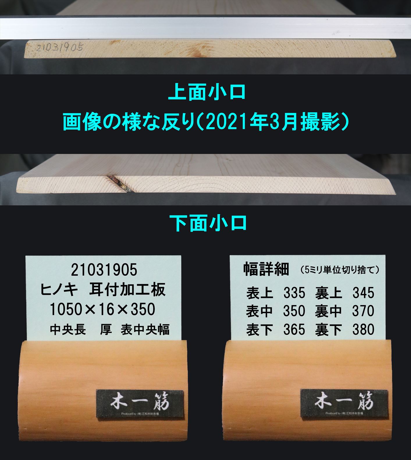 桧 耳付加工板 1050×16×335~380mm 21031905