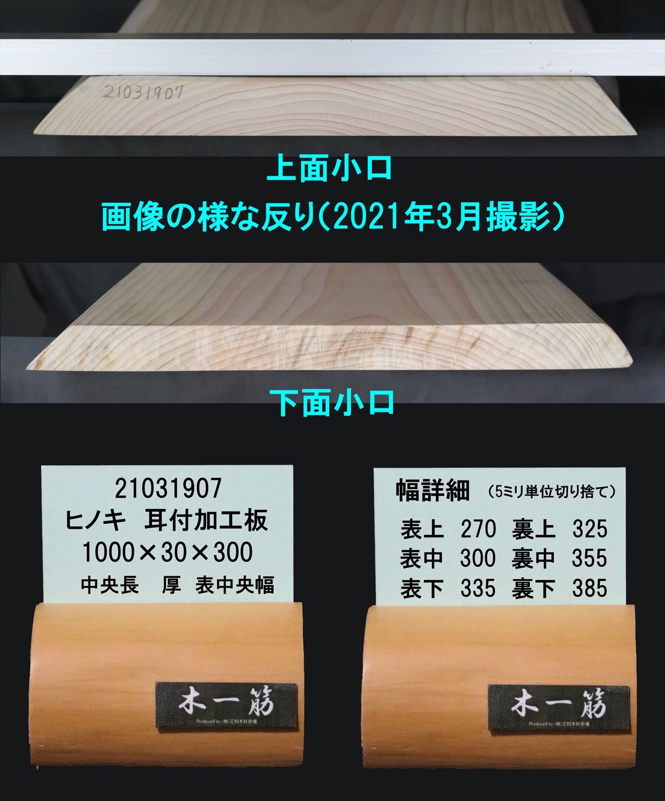 桧 耳付加工板 1000×30×270~385mm 21031907