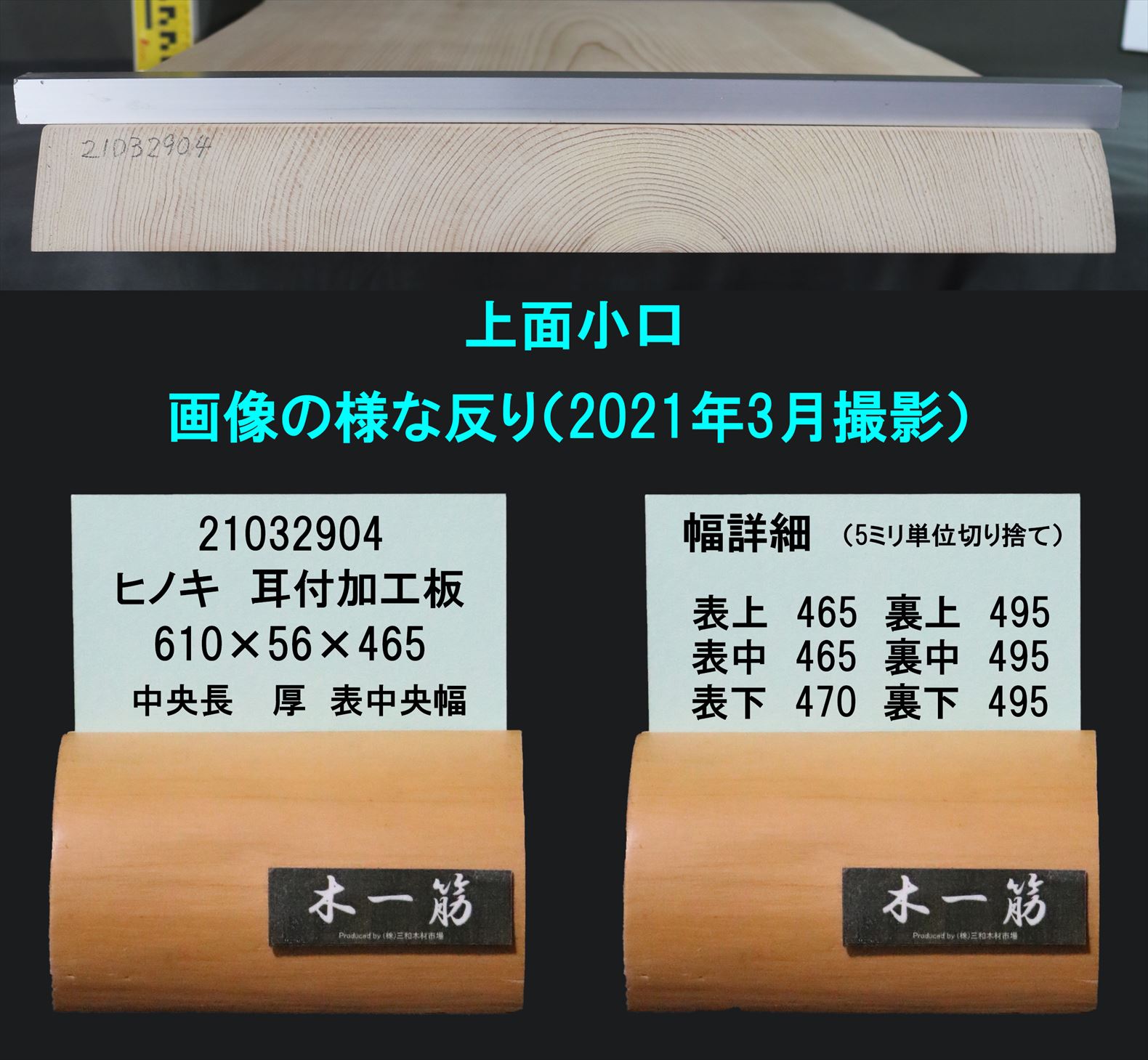 桧 耳付加工板 610×56×465~495mm 21032904