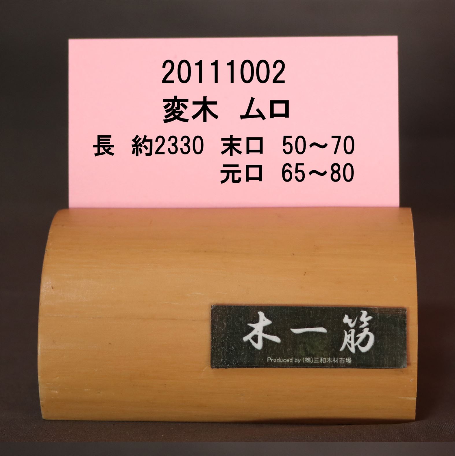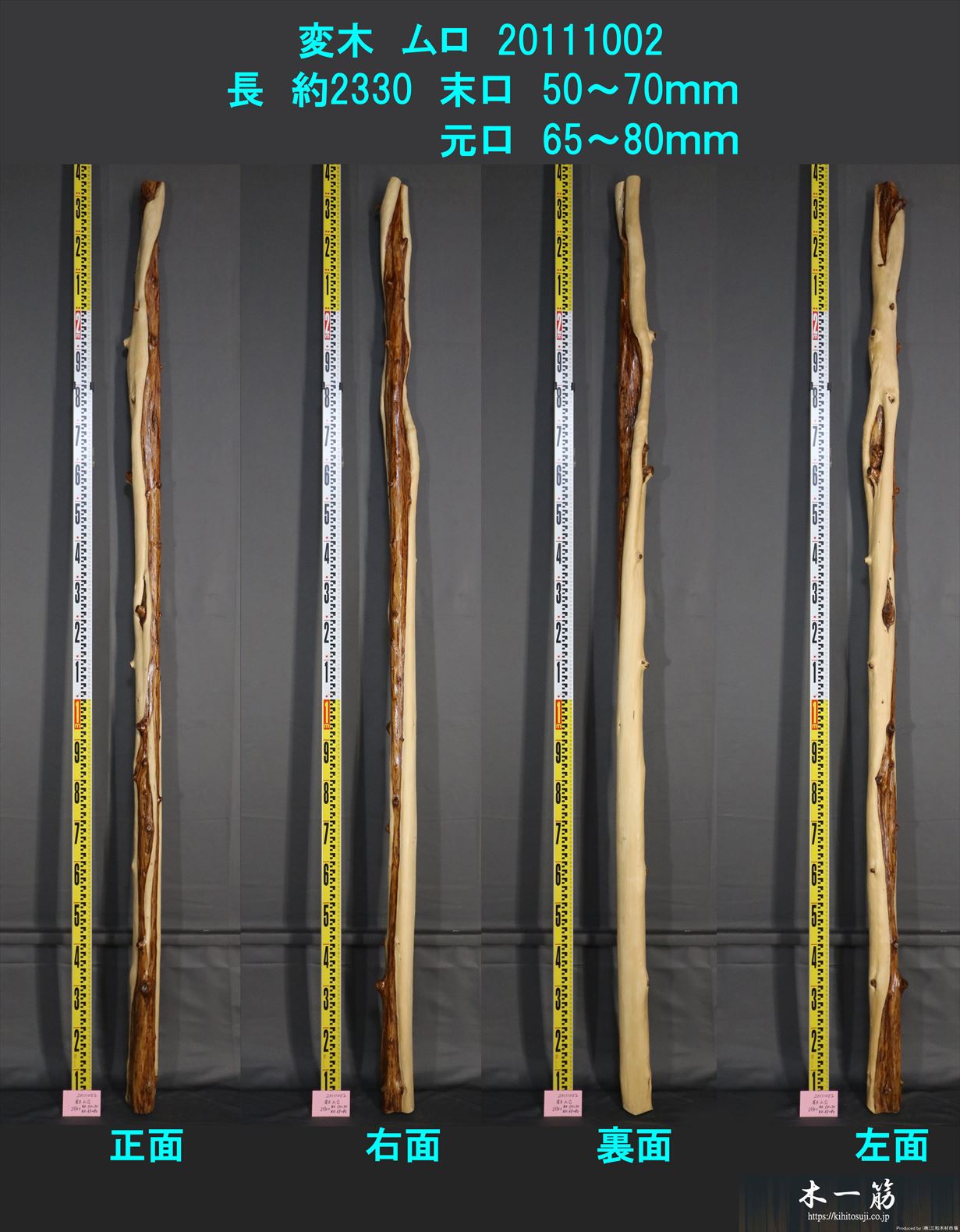 【変木】 榁(ムロ) 長さ約2330mm 末口幅Φ50~70mm 元口幅Φ65~80mm 20111002
