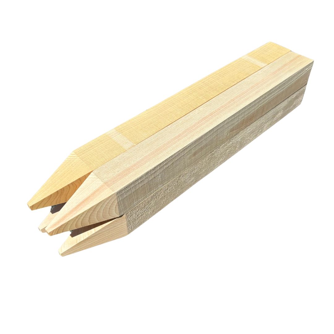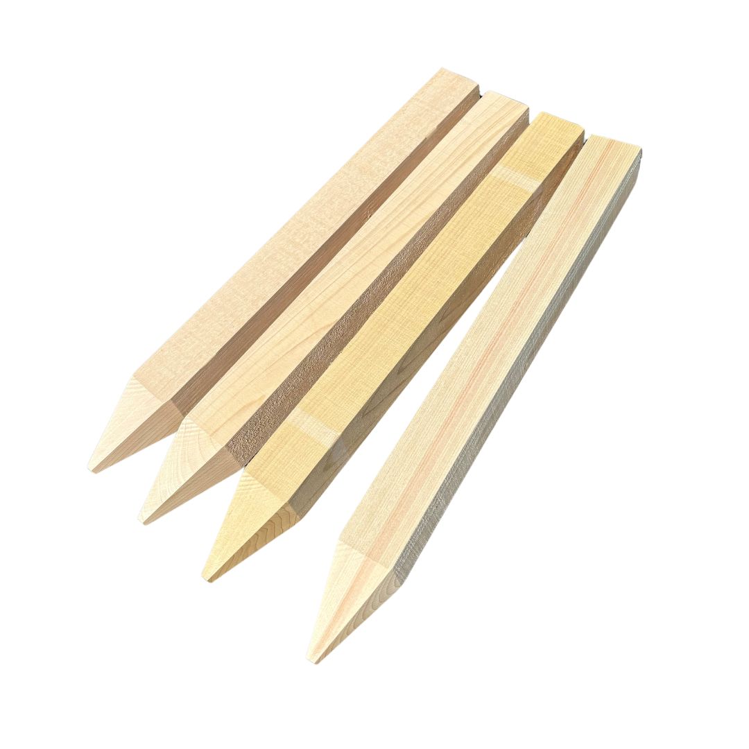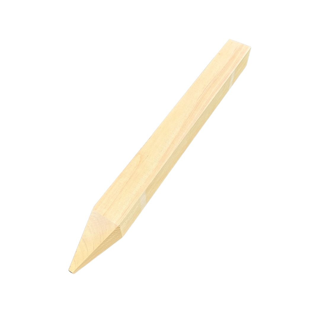 - 木口部分を丁寧に面取りした測量杭をご利用頂く事により、作業中の割れを防ぎ、作業効率アップが図れます。